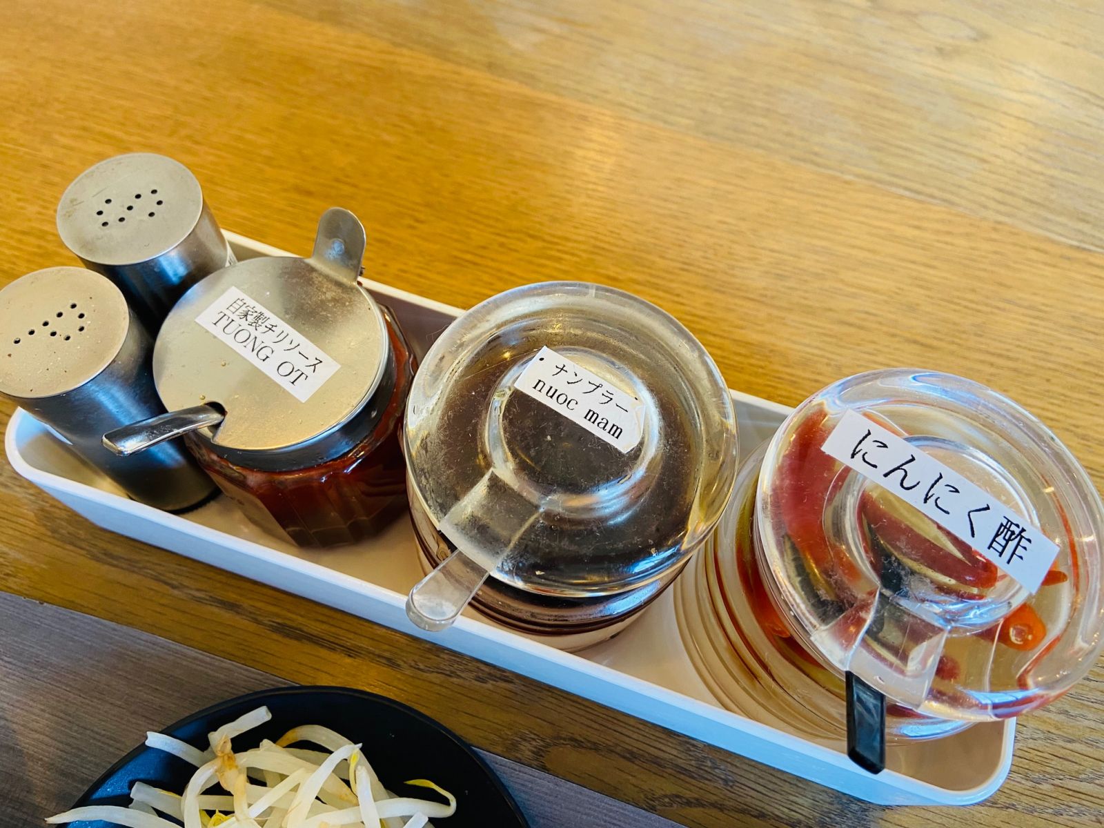 冷製フォーの味変用調味料です。ナンプラーの独特の味と香りは、クセになります。